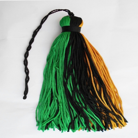 You see three color tassel . We make all kinds of tassels ,in all types of material like ( silk , myler ,bullion polyester and wool ) in any color ( single color and multy color ).for more informations contact us.